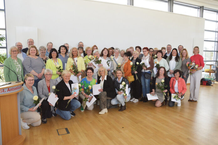 Vechta/Lohne/Damme/Cloppenburg. Frisch gebackene Pflegeassistenten: 32 Mitarbeitende der Krankenhäuser in Damme, Lohne, Vechta und Cloppenburg haben erfolgreich die sogenannte Nichtschülerprüfung Pflegeassistenz abgeschlossen. Im St. Antoniushaus in Vechta nahmen sie nun ihre Abschlusszeugnisse zur staatlich geprüften Pflegeassistenz entgegen.