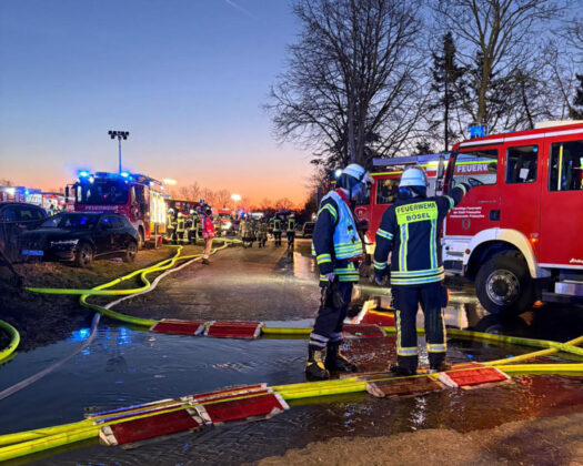 Insgesamt waren rund 150 Feuerwehrleute aus Bösel, Friesoythe und Garrel im Einsatz. Unterstützung kam auch von der DRK-Bereitschaft Molbergen, die bei frostigen Temperaturen für die Verpflegung der Einsatzkräfte sorgte. Der Einsatz dauerte bis in die Morgenstunden an, und erst gegen 9.30 Uhr konnten die letzten Feuerwehrleute die Einsatzstelle verlassen
