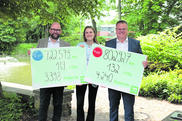 Nach Eingang aller Einzelresultate aus den 22 teilnehmenden Städten und Gemeinden ergab sich ein erstaunliches Bild: 3.398 Radler aus dem Kreis Cloppenburg hatten 722.579 Kilometer erstrampelt, 4.240 Teilnehmende aus dem Kreis Vechta 802.927 Kilometer. Wären diese Strecken stattdessen mit dem Auto zurückgelegt worden, hätte das einen CO2-Ausstoß von circa 250 Tonnen bedeutet.
