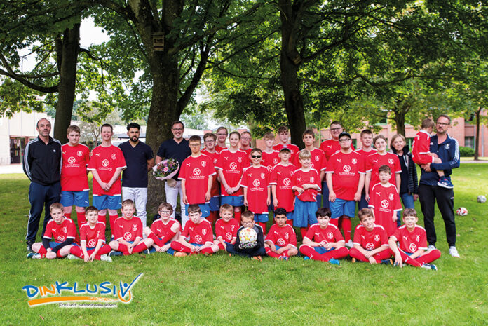 Dinklage. Neues Outfit: Die inklusive Fußballmannschaft „Fußball für alle“ aus Dinklage hat von der Zahnarztpraxis Dr. Szilinski & Partner neue Trikots bekommen. Die Spieler, Trainer und Betreuer freuen sich riesig über die neuen Outfits. Die Fußballmannschaft ist Teil von Dinklusiv, einer Inititative, die das Ziel verfolgt, nachhaltig wirkende Sport- und Freizeitangebote für Menschen mit und ohne Behinderung in Dinklage zu initiieren.