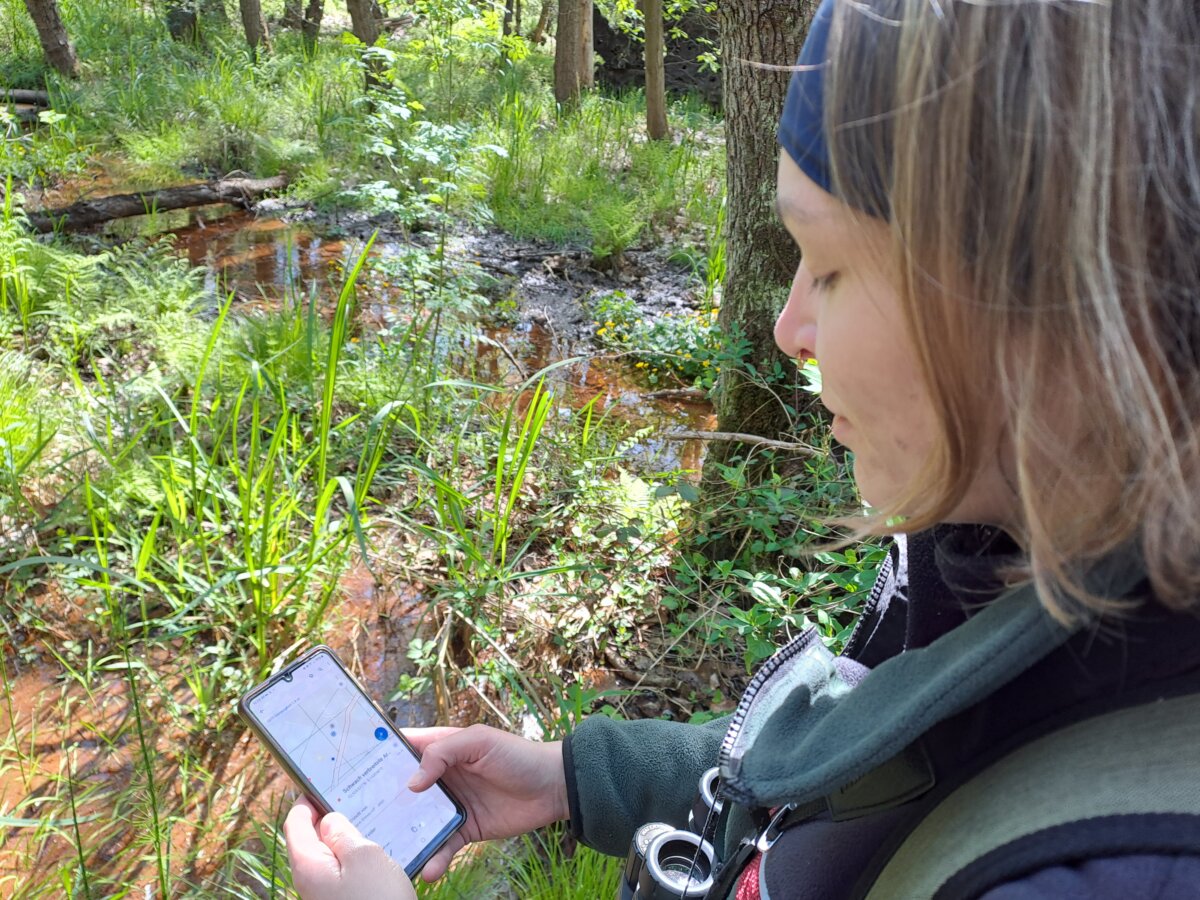 „Wir wollen uns einen Überblick über die Zusammensetzung der Torfmoose, Gräser und krautigen Pflanzen verschaffen“, so Karin Grever, Försterin für Naturdienstleistungen im Forstamt Ahlhorn und Projektleiterin. Gesucht wurde dabei gezielt nach Zeigerarten für die hier typischen Biotope. Zeigerarten sind Pflanzen oder Tiere, deren Vorkommen oder Fehlen in einem Lebensraum Rückschlüsse auf bestimmte Umweltbedingungen wie Feuchtigkeit, Nährstoffgehalt oder den pH-Wert des Bodens zulassen. „Unser Ziel ist es, die Landschaft in der Modellregion Ahlhorner Fischteiche natürlicher und ökologischer zu gestalten und den Wasserhaushalt der Landschaft zu stabilisieren. Dafür müssen wir wissen, wie es hier von Natur aus aussieht“, erklärt Grever.
