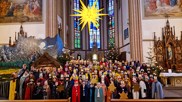 Jahr für Jahr geschieht das in ganz Deutschland: Die jungen und älteren Engagierten bringen als Sternsinger den Segen Gottes in die Häuser, erzählen oder singen und sammeln Spenden für benachteiligte Kinder weltweit. Ihre Kreidezeichen „C+M+B“ bedeuten „Christus mansionem benedicat – Christus segne dieses Haus“ und sind an vielen Haustüren das ganze Jahr über zu sehen.