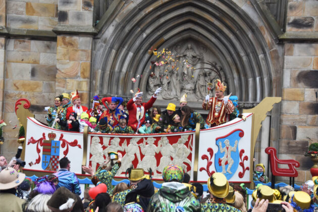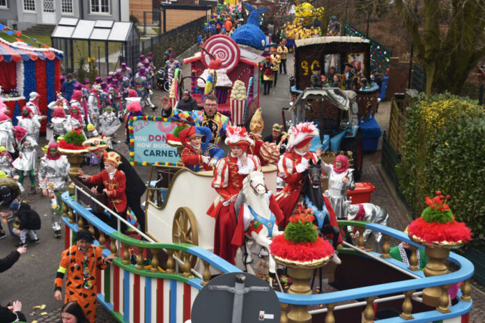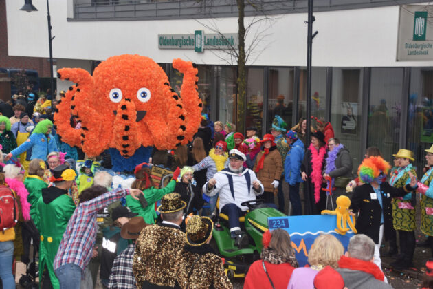 Damme. Nicht nur schreibt man Carneval in Damme mit einem „C“, auch ziehen die Narren hier bereits eine Woche früher als in anderen Karnevals-Hochburgen durch die Stadt. So auch in diesem Jahr: Los ging es mit dem ersten Umzug am Sonntag, 23. Februar. Ganz nach dem Motto, erst wählen, dann feiern. Das Kostüm durften die Dammer beim Wählen tragen, sofern sie noch zu identifizieren waren. Etwa 9.000 Narren mit 200 Motivwagen und Fußgruppen waren neben Prinz Markus I. Kramer (Foto unten rechts) und Ehrengast Dr. Andreas Philippi am ersten Tag dabei.