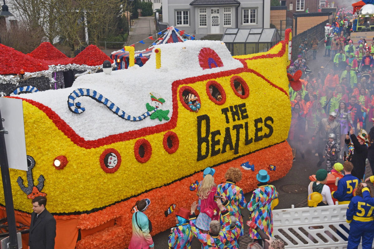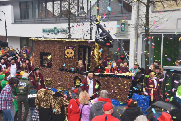 Das närrische Treiben wurde am Rosenmontag feuchtfröhlich fortgesetzt. Feucht vor allem, weil es kurz vor Umzugsbeginn noch geregnet hatte. Der Stimmung tat das aber keinen Abbruch. Mehrere Tausend Zuschauer wurden Zeuge, wie sich die weit über 200 Wagenbaugruppen und Kapellen langsam durch die Dammer Innenstadt bewegten. Zu bestaunen gab es dabei wieder aufwändig gestaltete Wagen, wie zum Beispiel ein „Yellow Submarine“-Motivwagen in Anlehnung an die Kultband „The Beatles“. Für diesen und zwei weitere Wagen (Prinzen-Gruppe und „ABIfusion“-Gruppe) gab es in diesem Jahr die höchste Auszeichnung.